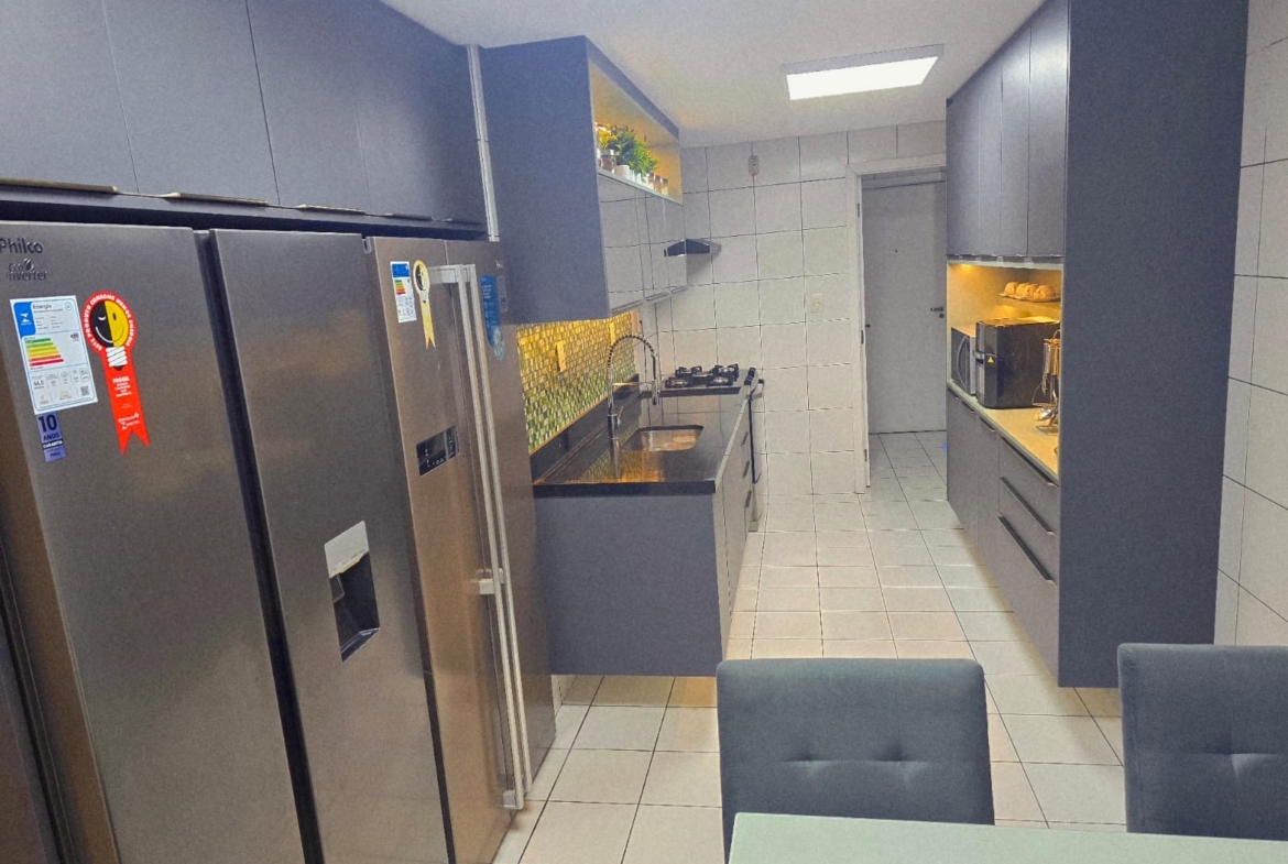 ● Cozinha planejada, área de serviço e lavabo