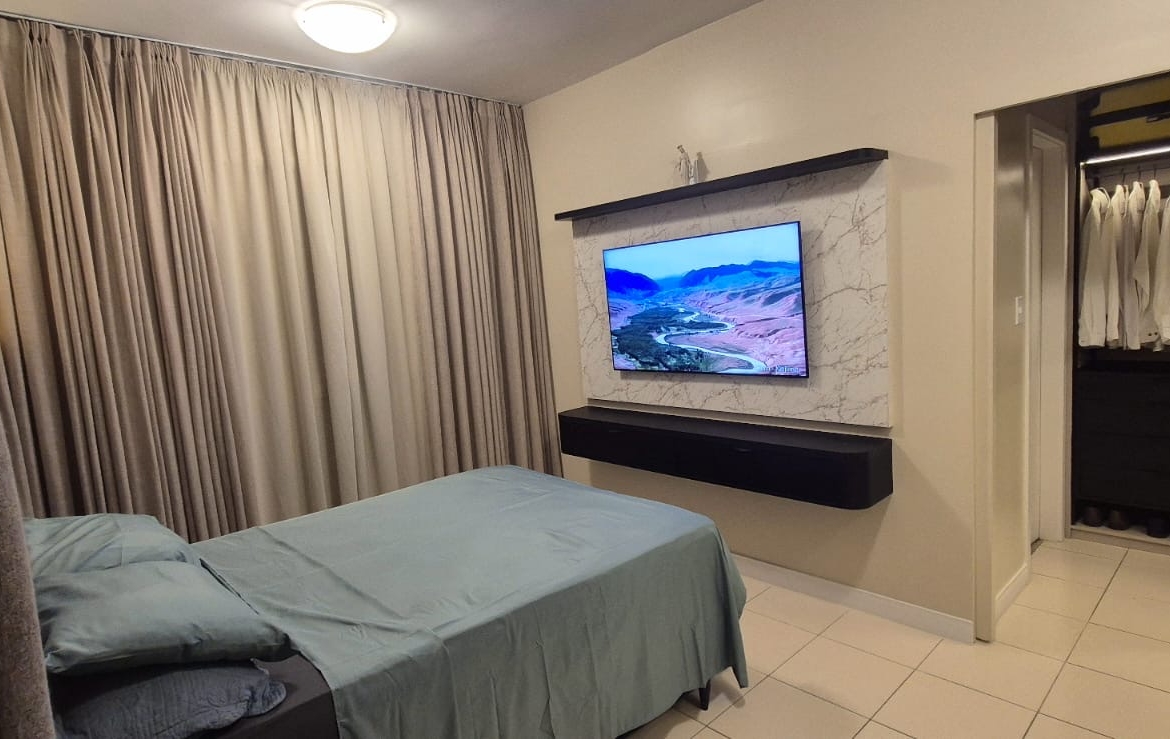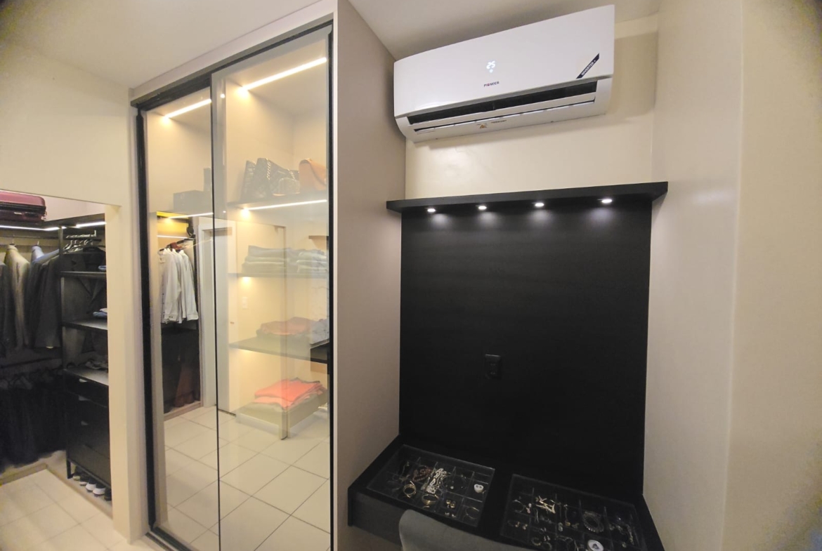 ● 3 quartos (3 suítes), 5 banheiros