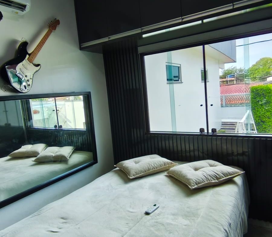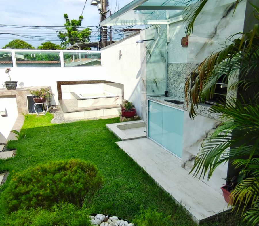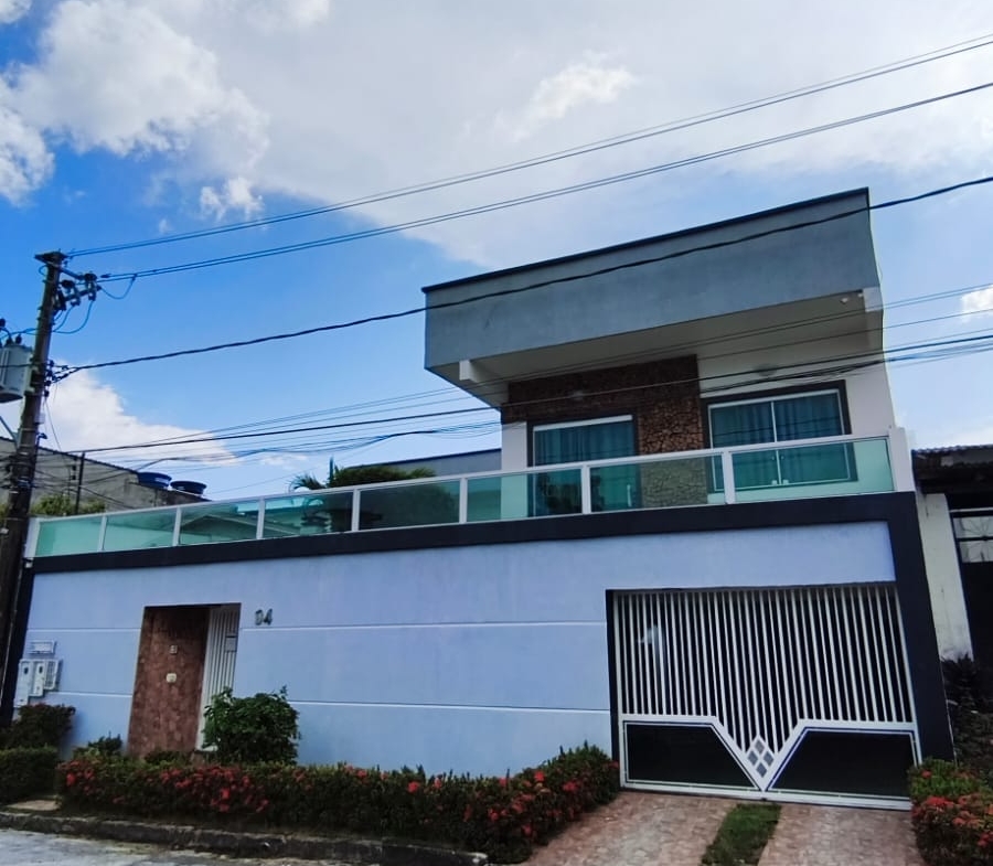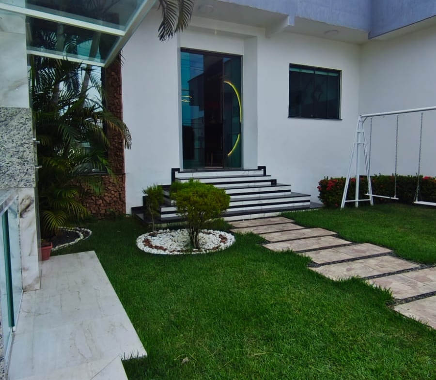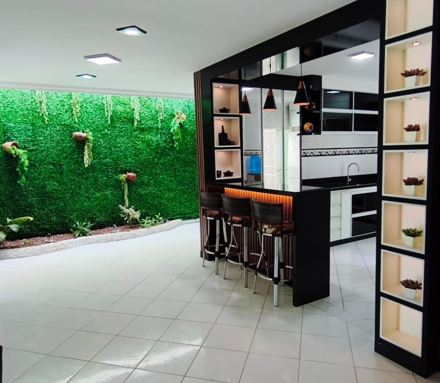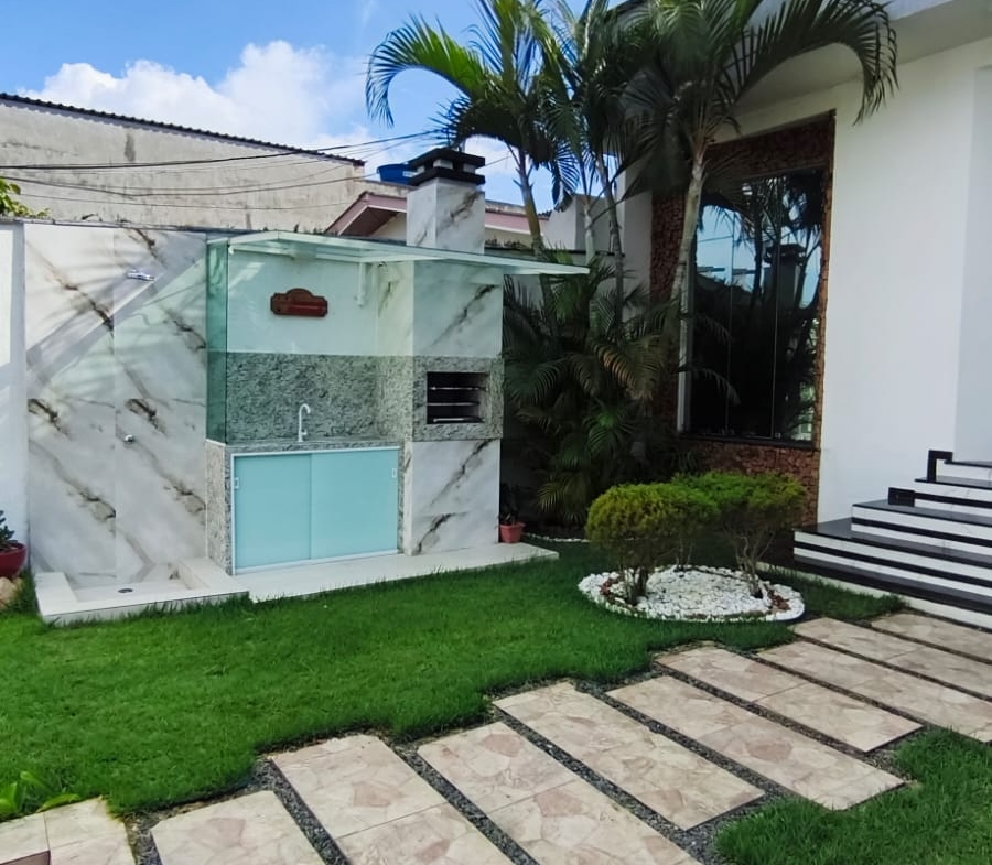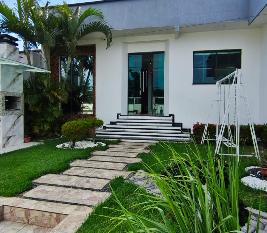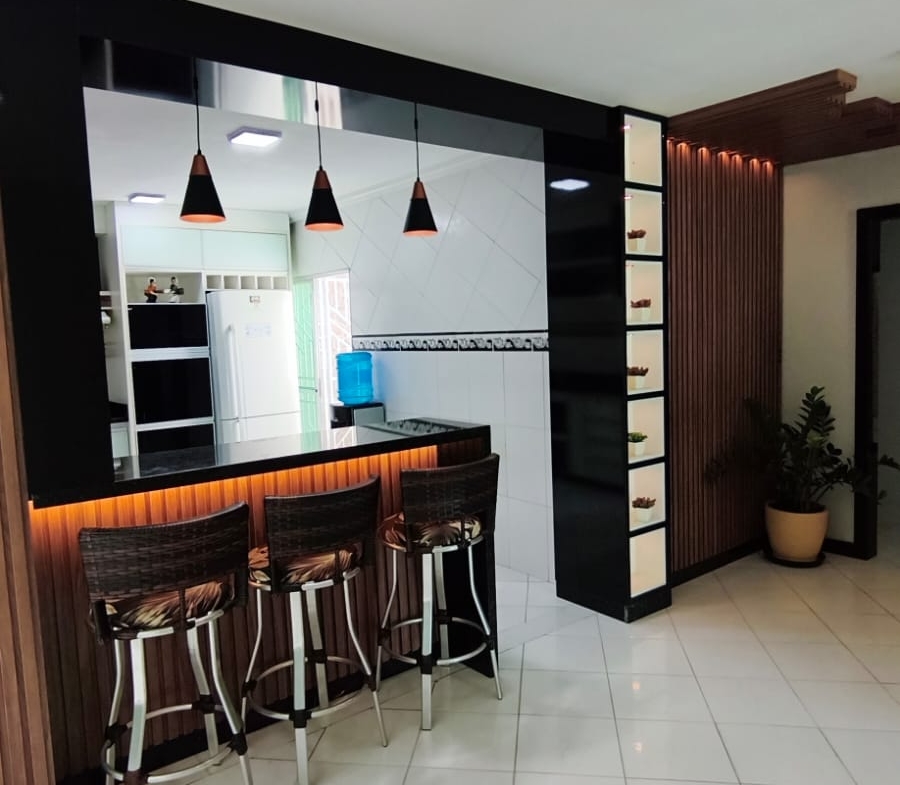 ⚪ Casa moderna com pé direito alto, toda no forro de gesso, portas e janelas em blindex proporcionando boa iluminação, casa de fino acabamento.