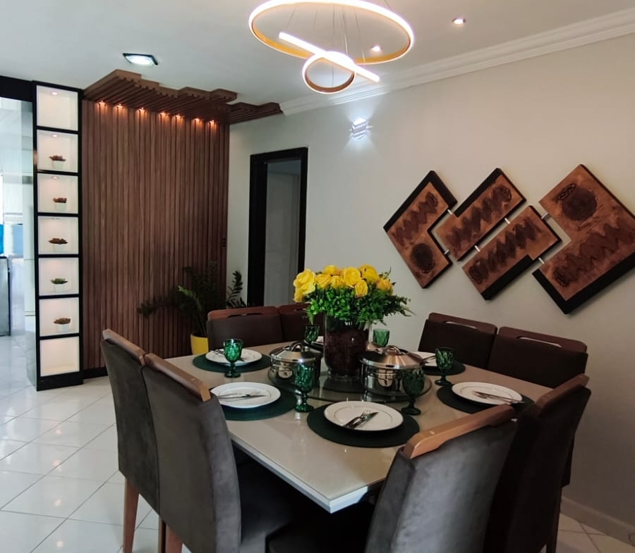 ⚪ Living integrado, com painéis e móveis planejados